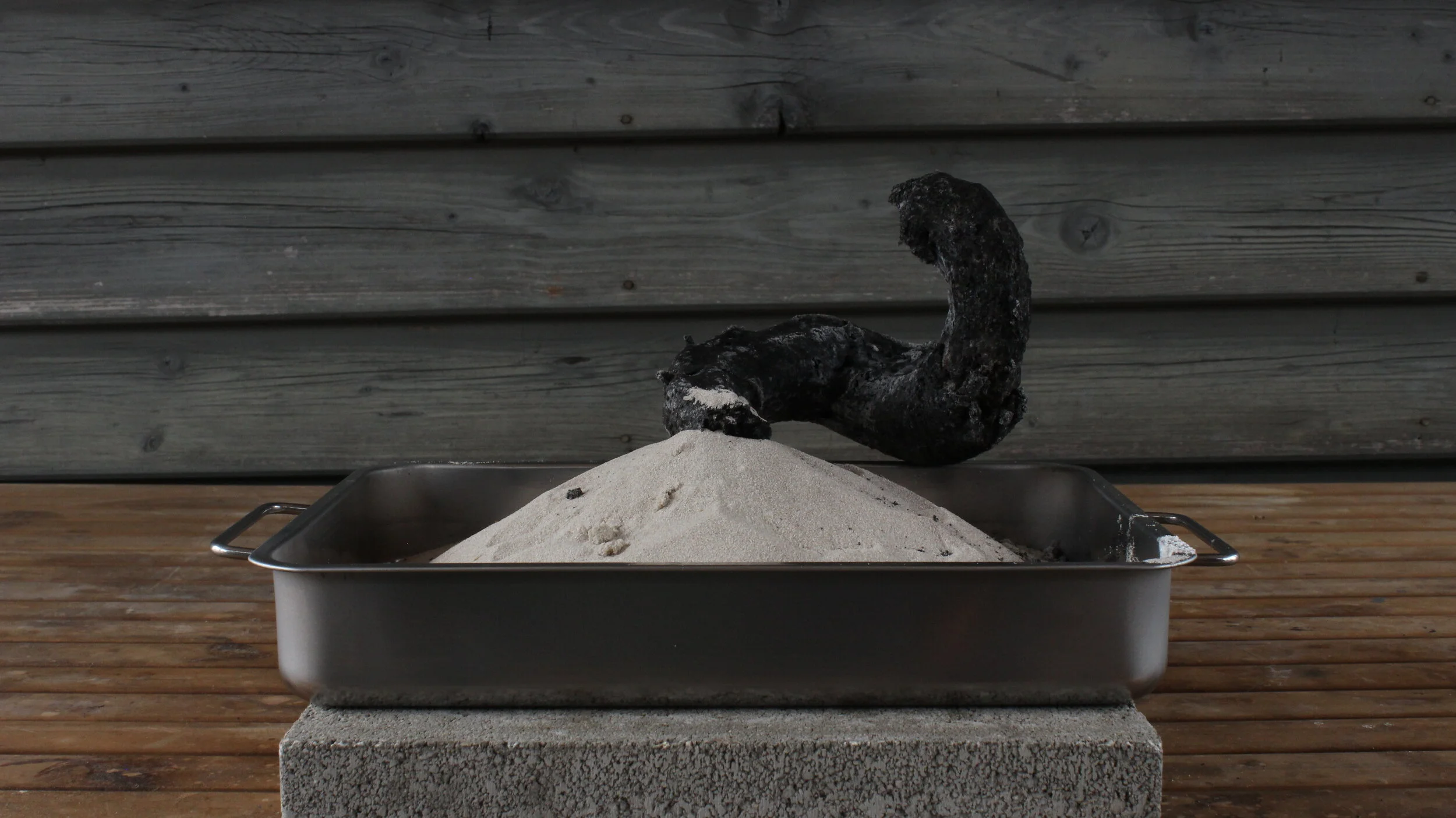 Es bildet ein Kohlenstoffgerüst, das langsam aus dem Sand herauswächst. Die Reaktion ist nach ca. 15 min beendet.