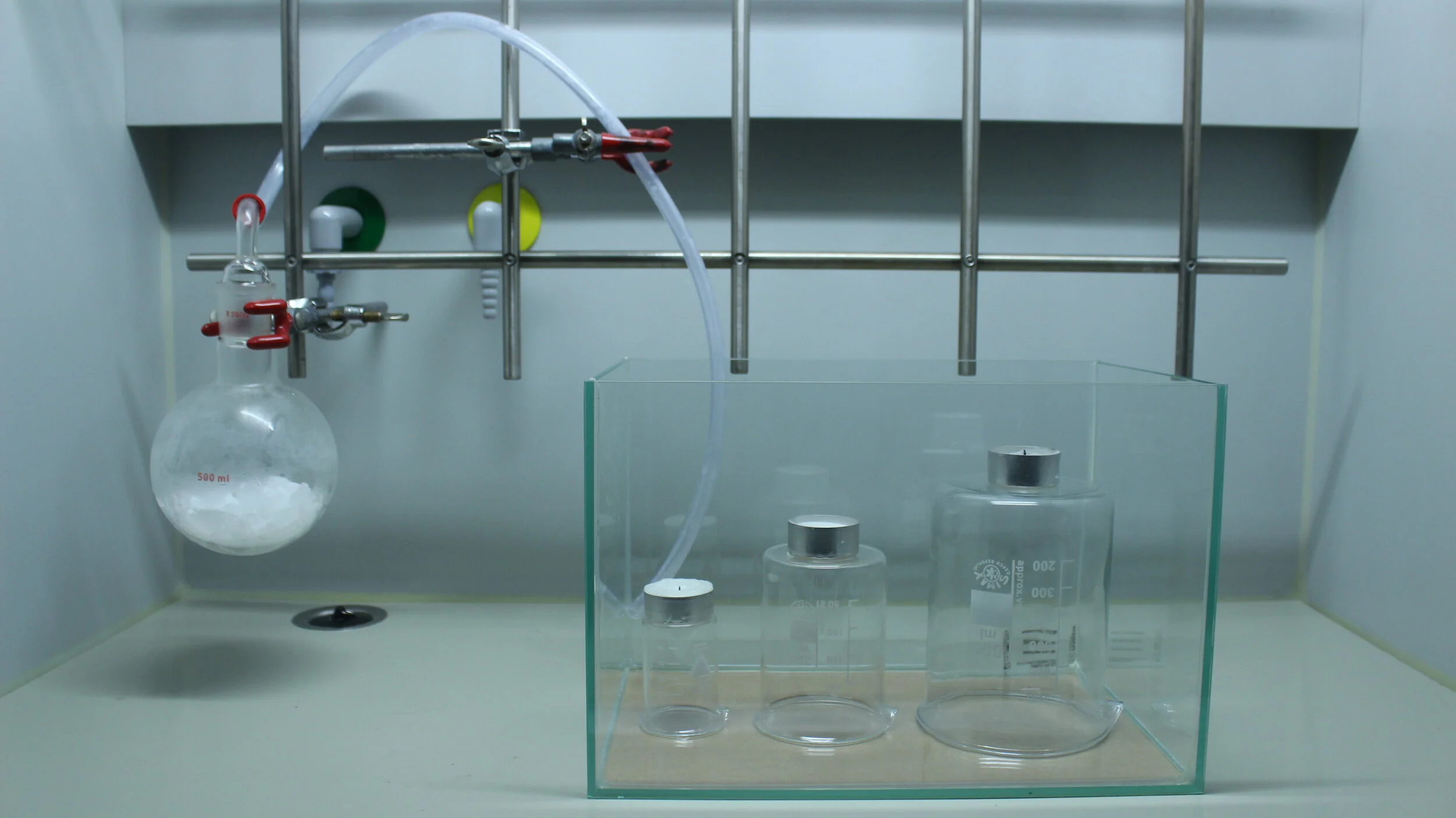 3 Bechergläser 250mL, 3 Glasrührstäbe, Colaflasche 500mL
