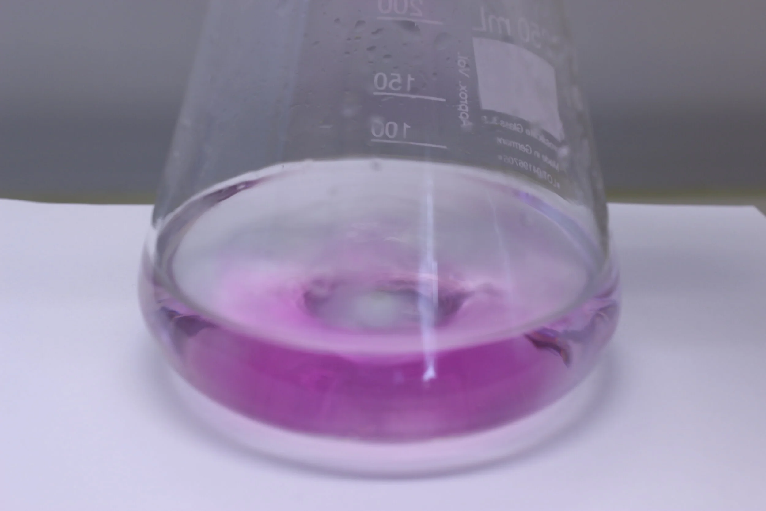 Lösung A und B werden in die Cola-Flasche vorgelegt und durch Schütteln vermischt. Nun wird zügig Lösung C hinzugegeben, die Flasche fest verschlossen, kräftig geschüttelt und auf einem Tisch oä. platziert. Der Farbumschlag passiert je nach Temperatur zwischen 15-20 Sekunden.